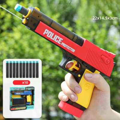 تفنگ اسباب‌بازی Police Protector یک اسلحه دوکاره هیجان‌انگیز است که هم با ۱۰ تیر فومی ایمن کار می‌کند و هم قابلیت آب‌پاش دارد. مناسب برای بازی‌های پرهیجان کودکان بالای ۳ سال.
