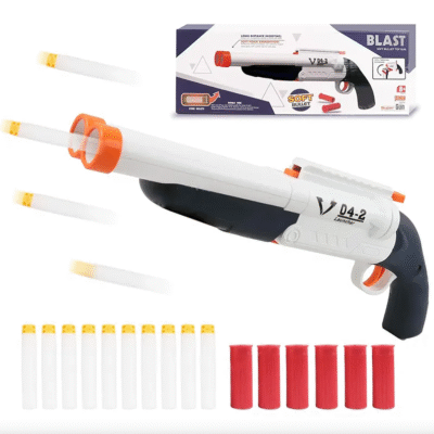 تفنگ اسباب‌بازی SUPER GUN مدل BLAST یک شاتگان با طراحی مدرن و عملکرد هیجان‌انگیز پوکه پران است. این تفنگ از گلوله‌های فومی نرم (Soft Bullet) کاملاً ایمن استفاده می‌کند و قابلیت تیراندازی مسافت طولانی را داراست. بهترین انتخاب برای بازی‌های اکشن و هیجان‌انگیز کودکان بالای ۸ سال.