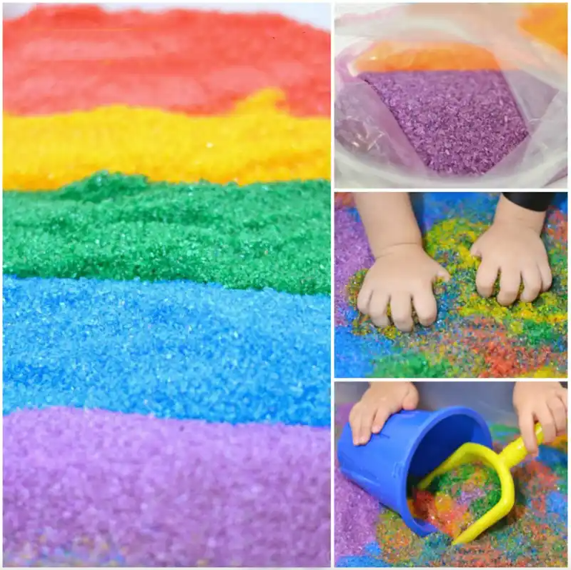 4. تنوع رنگی: این شن به دلیل رنگ‌آمیزی ملایم و جذاب (معمولاً با استفاده از رنگ‌های خوراکی ایمن)، فضای قفس یا آکواریوم حیوان را زیباتر می‌کند.