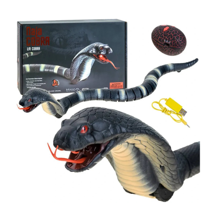 یک اسباب بازی ریموت کنترلی ترسناک و واقعگرایانه! این مار رباتیک با طرح کبرای سلطنتی (King Cobra)، از طریق کنترل مادون قرمز (I/R) هدایت میشود و حرکاتی شبیه به خزیدن مار واقعی دارد. این محصول قابلیت شارژ از طریق کابل USB را نیز دارا میباشد.