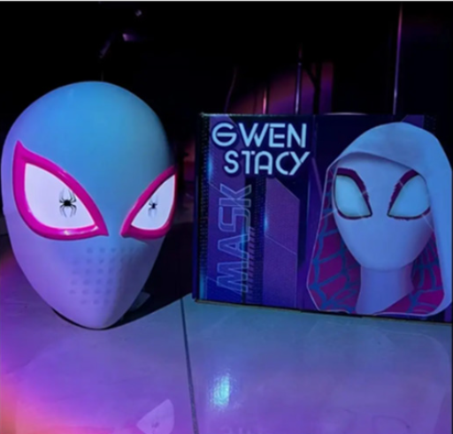 ماسک پرطرفدار گوئن استیسی (Gwen Stacy)، قهرمان زن دنیای مرد عنکبوتی. این ماسک، ایدهآل برای نقشآفرینی (Cosplay) و بازیهای کودکان است و دارای ویژگی جذاب چشمان چراغدار (LED) به رنگ صورتی/سفید میباشد که در تاریکی جلوهای فوقالعاده ایجاد میکند.