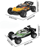 - رقابت دوگانه: داشتن دو ماشین (یک زرد/نارنجی و یک سبز/مشکی) و دو ریموت کنترل مجزا، امکان برگزاری مسابقات هیجانانگیز و رقابتی بین دو نفر را فراهم میکند.