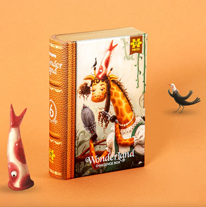 بستهبندی جعبه کتابی نفیس: مانند سایر مدلهای سری Wonderland، این پازل در یک جعبه کتابی محکم و شیک طراحی شده است. رنگ جلد آن (نارنجی متمایل به قهوهای) به آن ظاهری کلاسیک و دکوراتیو میبخشد که میتوان آن را به عنوان یک آیتم تزئینی در قفسههای کتابخانه نگهداری کرد.