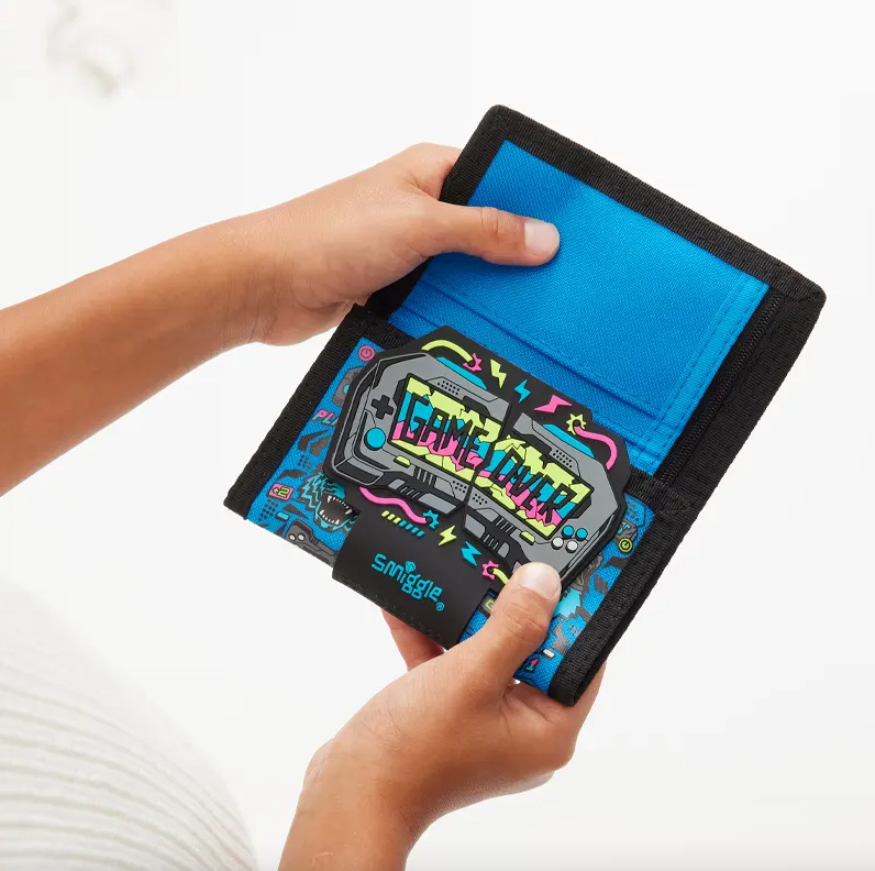 کیف پول Smiggle مدل گیم اور، ترکیبی عالی از کارایی، کیفیت و طراحی مدرن است. این محصول با بستهبندی سه لتی (Trifold) و بند چسبی (ولکرو)، امنیت پول خرد و کارتهای کودک شما را تضمین میکند و استفاده از آن برای کودکان آسان است.